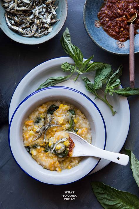Food and drink all categories abstract animals/wildlife backgrounds/textures It served with chili sauce and salted fish. It is basically a rice porridge in fish soup with fried salted fish (usually tuna), thinly sliced egg and an assortment of vegetables such as string beans, sweet potatoes, basil, watercress, yellow squash, red onion, tomatoes, red pepper, corn and spinach, spiced with salt,.